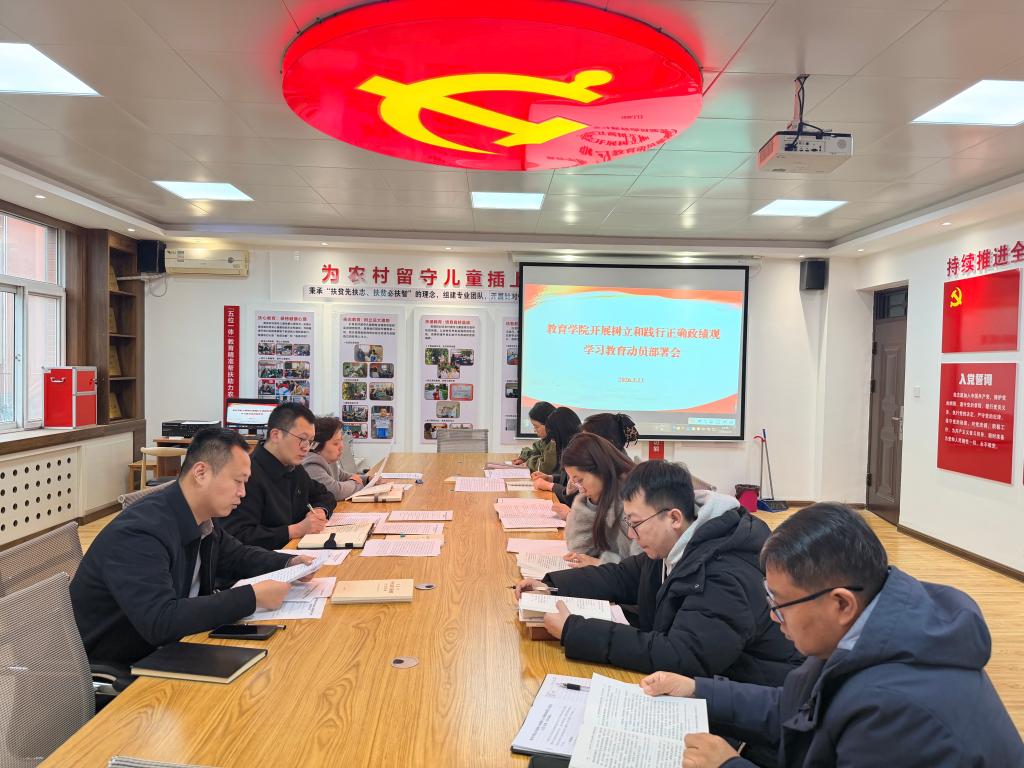 3月13日下午,教育学院党委在立心楼225会议室召开树立和践行正确政绩观学习教育动员部署大会。会议由学院党委书记郝鑫主持,学院党委委员、党支部书记、科级干部参加会议。