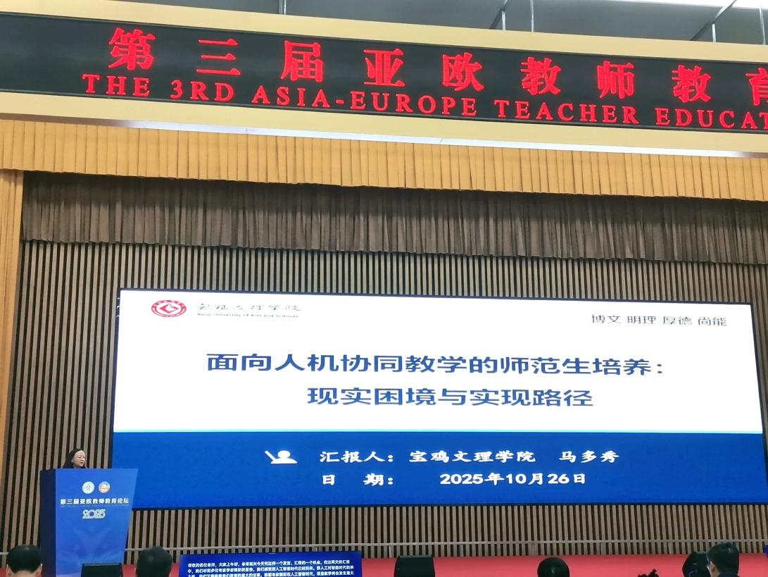 10月24日至26日,由西北师范大学主办,甘肃省教育厅与甘肃省人民政府外事办公室指导的第三届亚欧教师教育论坛在西北师范大学举办。来自14个国家和地区的60余所高校和机构的专家学者、教研人员、期刊编辑、教育研究机构负责人及师生代表共300余人参会,以“AI赋能教师:重塑教育的未来”为核心,共话AI赋能教师发展,共推教育数字化转型。甘肃省人民政府外事办主任徐妍丽、甘肃省教育厅副厅长曾华辉、俄罗斯喀山联邦大学叶拉布加学院院长马拉特·乌马罗夫(Marat Umarov),西北师范大学党委书记贾宁出席开幕式并致辞。开幕式上,王占仁宣读了《‘一带一路’教师教育共同体倡议》;贾宁、曾华辉、徐妍丽与马拉特·乌马罗夫(Marat Umarov)等15位海内外嘉宾携手启动“一带一路”教师教育共同体正式成立。我校教育学院院长马多秀教授应邀参加会议并作大会报告。