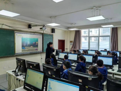 随后,我院师生深入小学信息科技课课堂,旁听三年级Scratch编程课,该课程以“设计海底世界”为主题,学生在轻松有趣的氛围中学习Scratch基础操作与逻辑构思。教师通过情境引导、任务驱动,鼓励学生自主创作、合作分享,让研究生们看到技术如何成为激发想象、锻炼思维的载