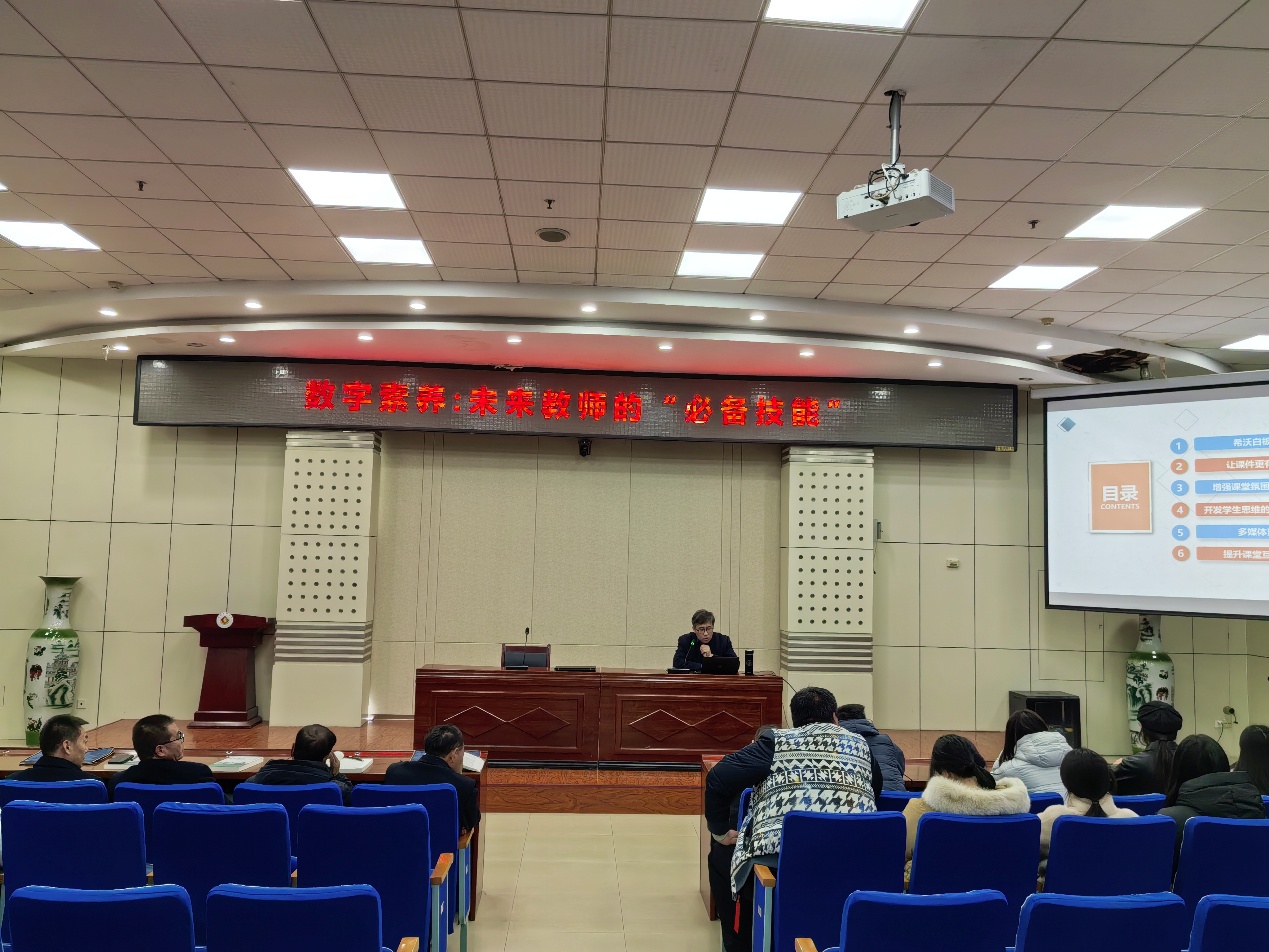 12月11日下午,教育学院在高新校区木铎厅举办“数字素养:未来教师的‘必备技能’报告会。报告特邀宝鸡市资深教师信息技术应用能力提升培训专家汤超副教授担任主讲。报告会由宝鸡市教育数字化研究中心主任、教育学院教育技术系刘敏娜博士主持。