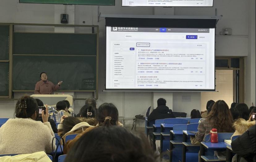 12月17日下午,教育学院在立心楼119室举办纬度学术资源在线数据库使用培训会,会议特邀纬度学术高级培训讲师蔚慧担任主讲,会议由教育学院院长助理文军萍主持。