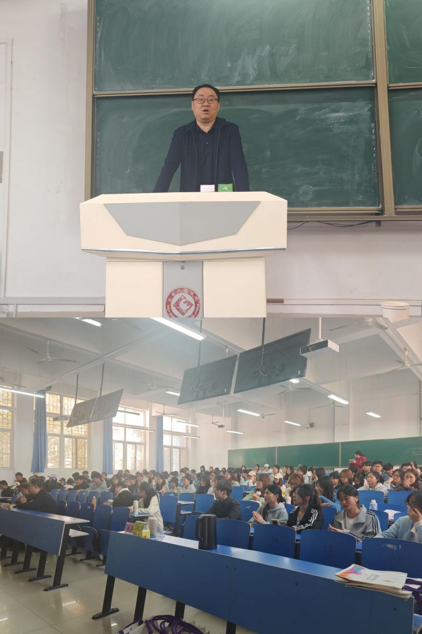 2026年4月1日,教育学院在立心楼110教室举办“爱心接力·榜样领航”优秀校友经验分享会。学院党委书记郝鑫、党委副书记王小敏出席,优秀校友姚玉玮与150余名师生共同参加活动。